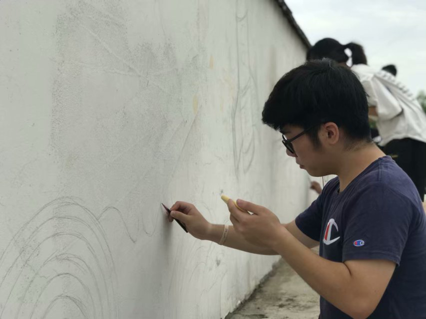 (通讯员:季康)2019年7月5日凌晨五点,当天还蒙蒙亮时,位于叶县叶邑镇西王庄村的志愿者们已经洗漱完毕,准备出发,此时的地面温度仅仅只有15度,这对于没有穿长裤的志愿者们来说,这确实是一种挑战,可寒冷的天气并不能阻挡志愿者们的热情。今天,他们的工作就是将村里的十几面墙体的起型任务完成。待到中午十点左右,气温开始上升,空气中的燥热和沉闷让人开始不适,志愿者们便收拾东西回村休息。