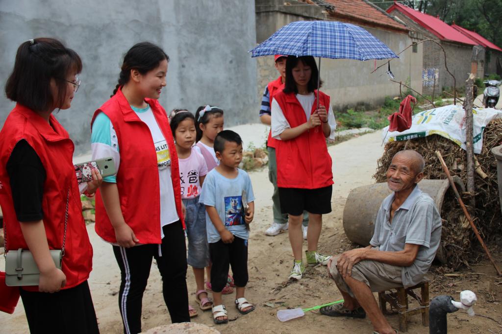 在进行社会实践的过程中,炎炎烈日也阻挡不了红色青春轻骑兵们的脚步,在村庄的小路上,他们不时遇到在路边或者在屋檐下坐着的老人,主动上去与村民们交谈,从生活中的小事聊到了村中大大小小的变化。在和村民的亲切交谈中,红色青春轻骑兵被当地村民的热情所感动,也为当地村民面对的困难建言献策,同时红色青春轻骑兵对村民的困难也感同身受,更加明白精准扶贫、乡村振兴的重要意义。坚定向上向善的责任感和奉献社会的使命感,以饱满的热情,高昂的斗志投身于农村发展,发挥老员工在美丽乡村建设中的积极作用。