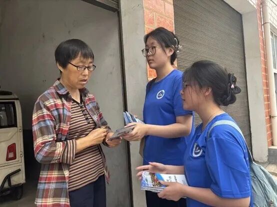 在焦庄社区党群服务中心,实践队与社区工作人员展开深入交流。队员们介绍活动初衷与政策宣讲重点,社区人员则分享乡村教育现状及村民对教育资助的实际需求。依托社区平台,实践队向过往村民发放资料、普及政策,进一步扩大宣传覆盖面,营造出 “人人关注教育资助,共同助力人才培养” 的浓厚氛围。