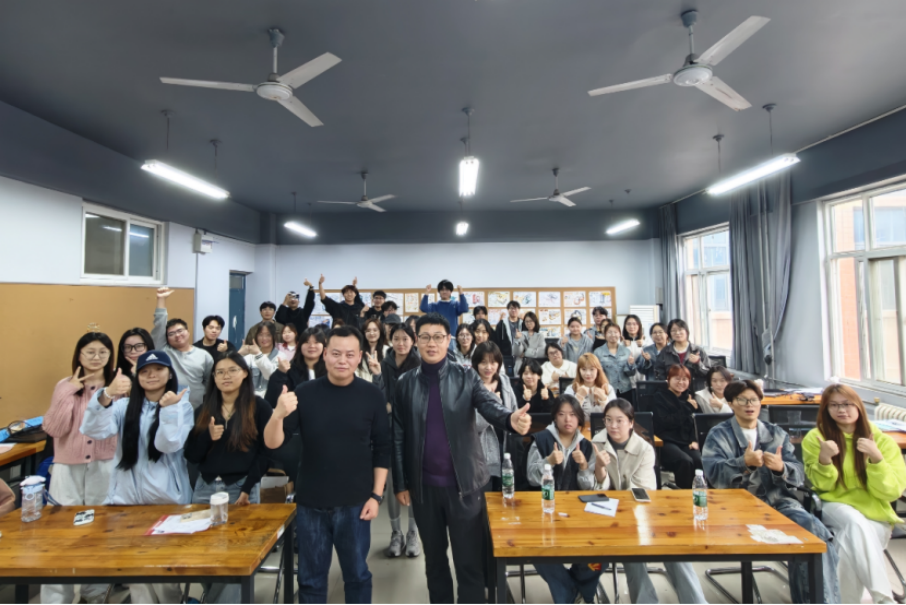 在提问环节,同学们就“如何积累造型”“AI的发展对软件技能的要求”等问题踊跃发问,学长结合自身经验逐一细致解答,现场思维碰撞不断,氛围热烈。