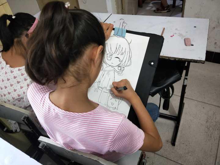 当地孩童认真学习绘画