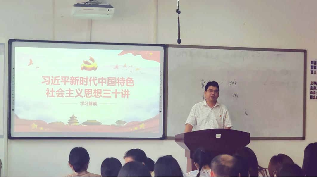 本次党课由党总支书记马步伟进行专题辅导。党总支书记马步伟分别从习近平新时代中国特色社会主义思想的时代背景、重大意义、理论体系、理论品格四大方面对习近平新时代中国特色社会主义思想进行了梳理讲解,随后又分章节对《习近平新时代中国特色社会主义思想三十讲》的内容进行了概括总结,宣讲内涵丰富,旁征博引。