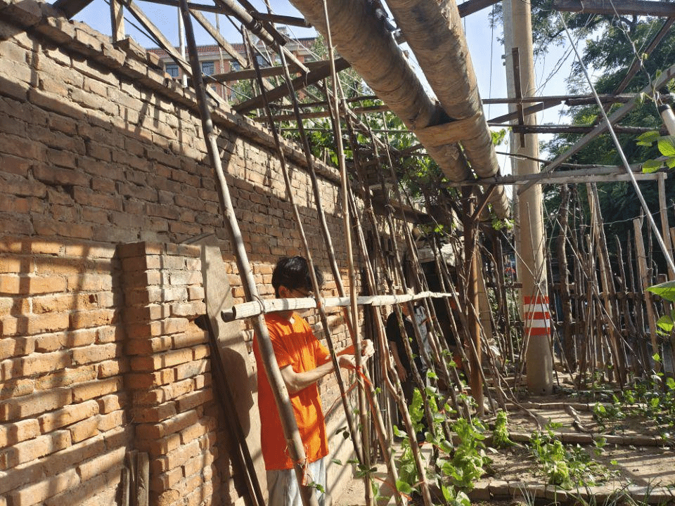 图为实践团成员帮助居民扎围栏