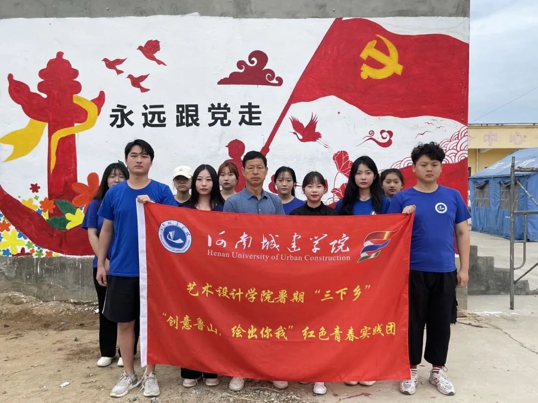为喜迎二十大、永远跟党走、奋进新征程,集中展现新时代青年爱国担当、奋发向上的精神面貌,beat365中文官网“创意鲁山,绘出你我”红色青春实践团于2022年6月上旬在指导老师郭梦垚的带领下前往鲁山县库区乡王村进行“永远跟党走,奋进新征程”墙绘。