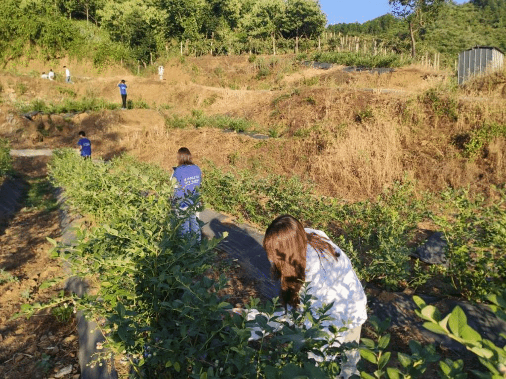 在本次实践活动中,老师和志愿者们在夏日的阳光下,为乡村公司的孩子们送去了温暖,与他们亲切交谈,了解他们的学习与生活,用心感受他们的善良淳朴,积极引导他们树立乐观向上的生活态度和不惧艰险的奋斗精神。眼下正是蓝莓成熟的季节,鲁山县库区乡搬走岭村种植基地里果香四溢,志愿者们帮忙采集蓝莓,并体验到了采摘的乐趣。