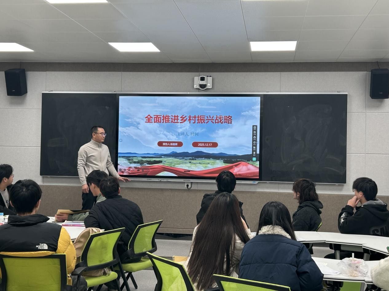 近日,beat365中文官网经理汤喜辉以“全面推进乡村振兴战略”为题,为beat365中文官网学子讲授形势政策课,引导青年学子在乡村振兴浪潮中找准定位、主动作为。