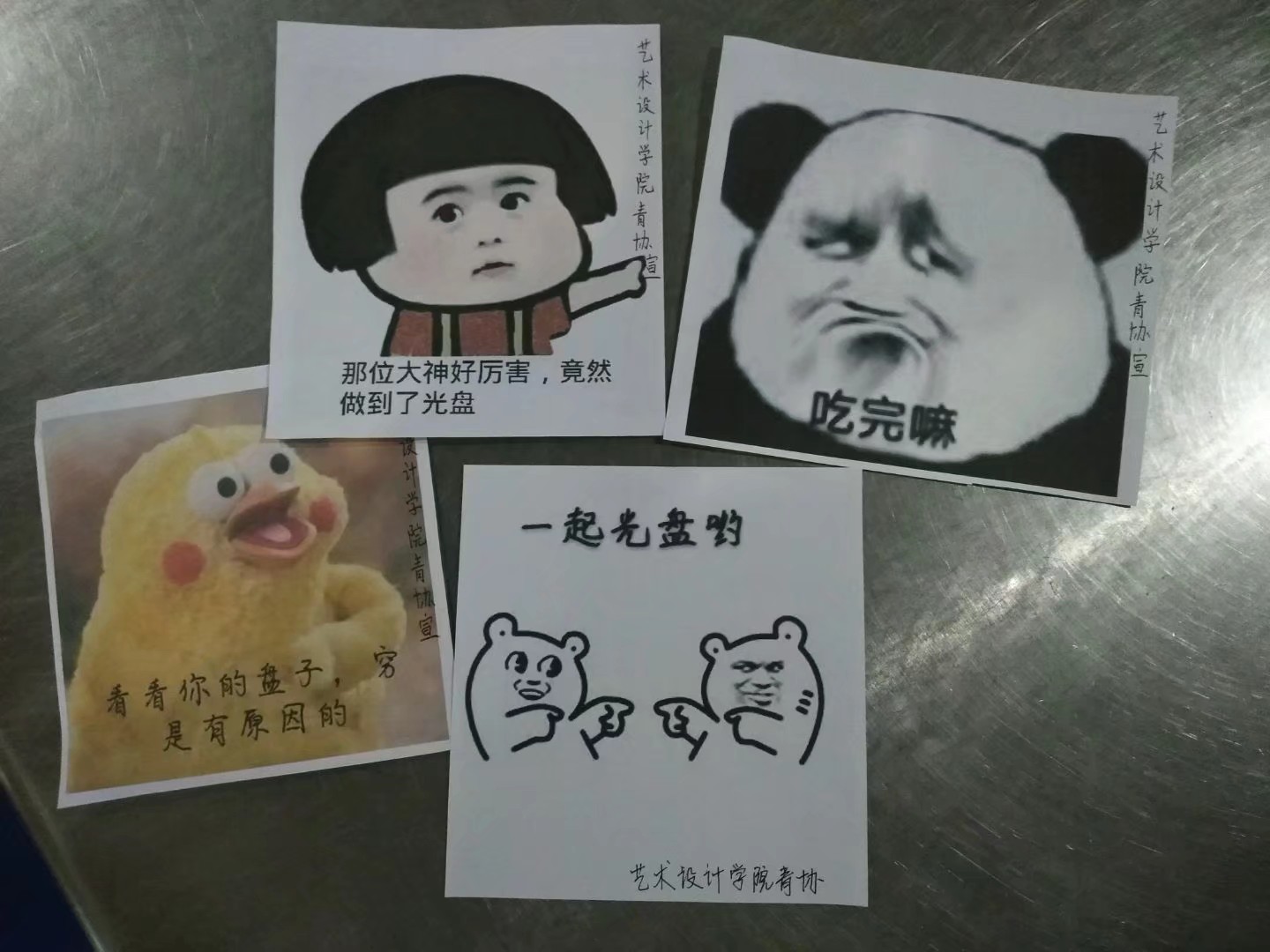 此次活动不仅能够增强同学们勤俭节约的优良品德,也创新了“光盘行动”的宣传方式,粘贴的一张张有趣的表情包,增添了同学们就餐时的乐趣!志愿者们辛勤的劳动希望能让更多的人加入到“光盘行动”中去,构建一个文明餐厅。此次活动圆满成功!