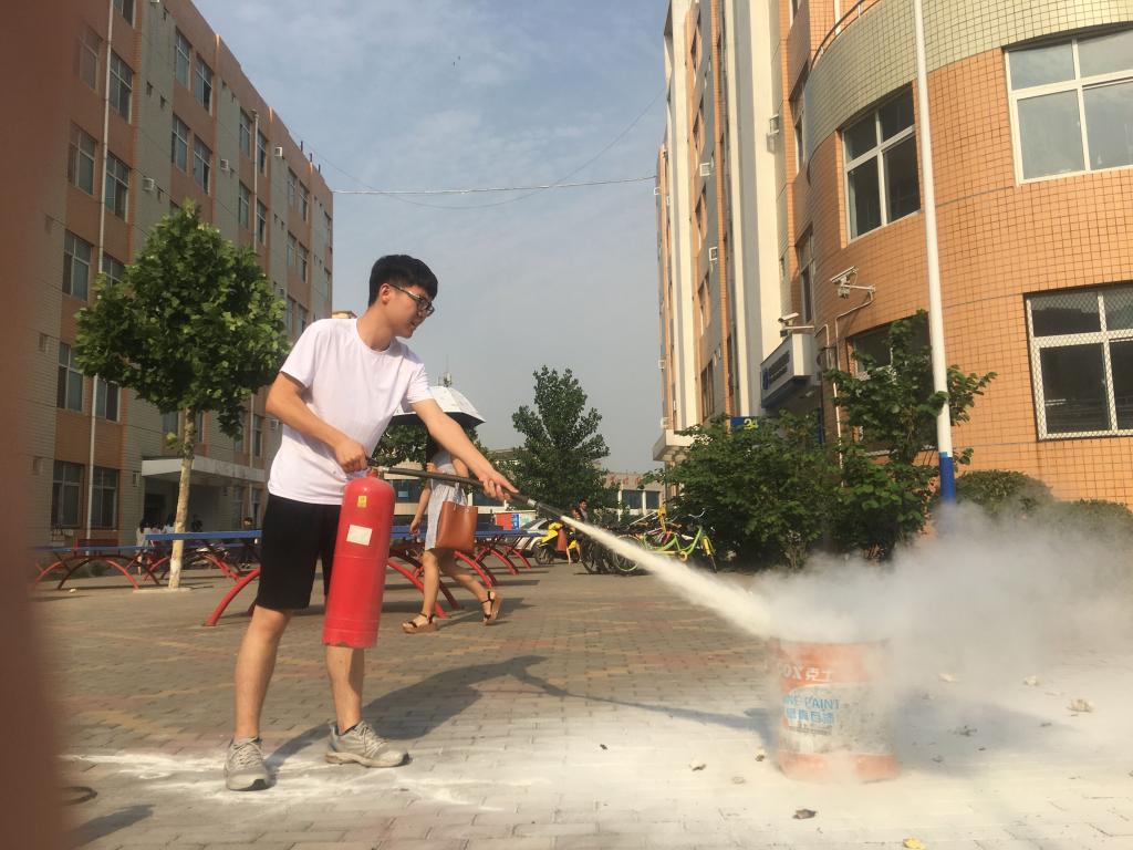 演练开始,先由安全员对参与人员演示了灭火器的正确使用方法、步骤和灭火姿势等,然后安排现场部分师生实操灭火。为及时掌握和体验真火的灭火方法,参加演练的师生严肃认真,服从指挥,现场气氛十分热烈。整个灭火实操按预练方案有序进行,达到了预期效果。