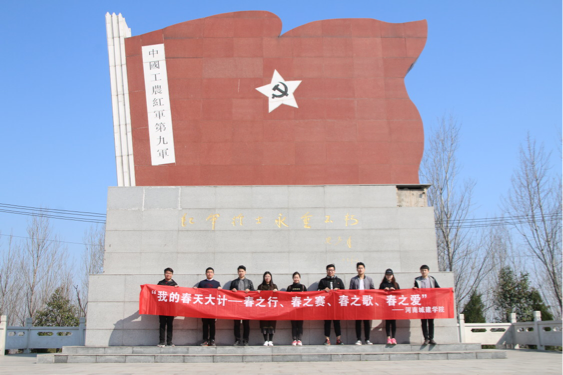 三月十四日上午九点,党老师、杨老师及主席团部分成员共同前往中国工农红军第九军的诞生地——叶县辛店镇,参观革命烈士纪念碑。纪念碑由“中国工农红军”军旗和底座组成,碑上篆刻着红军战士们的英雄事迹,碑体庄严肃穆,记录着革命先烈们的付出与牺牲。纪念碑前,老师与同学们缅怀着革命先烈、重温入党的誓词、弘扬奉献精神。感受着纪念碑带来的肃穆庄严的氛围