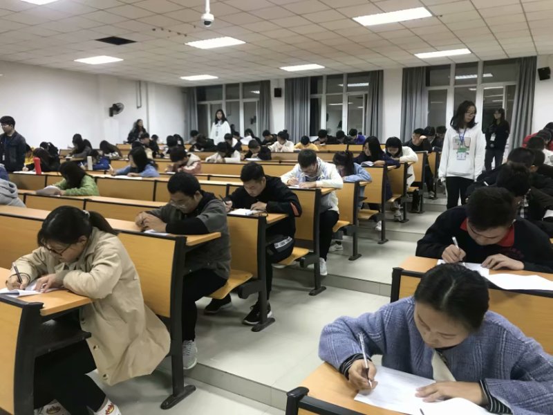 活动现场座无虚席,首先为考生分取座位,然后考生有序入座之后上交物品,由监考员简述注意事项和考场纪律。接着分发试卷,考场纪律严谨,安静到只能听到笔“沙沙”写字的声音。在规定的时间内考生认真答题,考试时间结束后有序交卷离场。