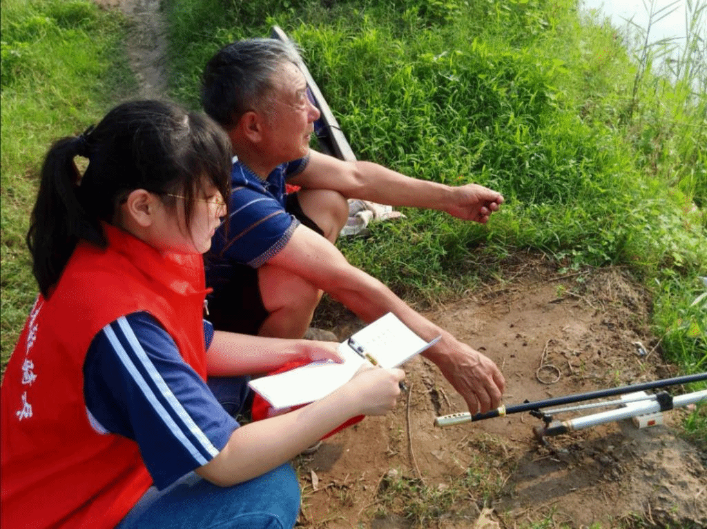 实践队员在对垂钓者进行访谈。认为现在河湖水质得到改善,但仍然存在较大问题,特别是农药、化肥大量使用使河湖水质变差。