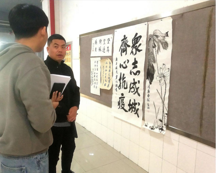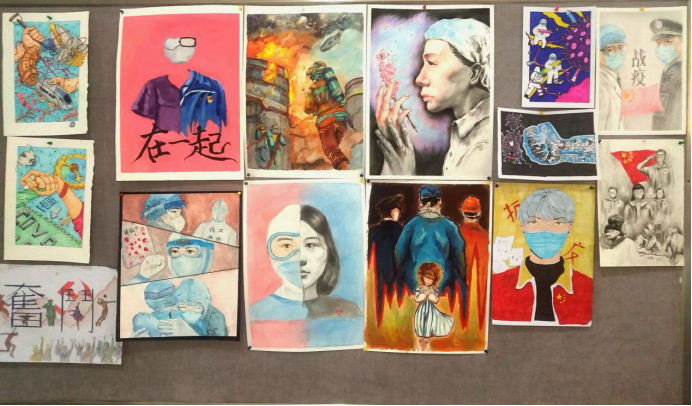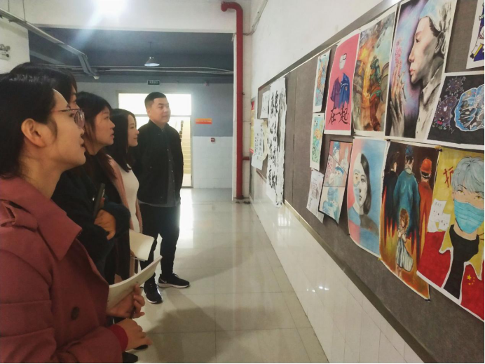 在展评过程中,员工们的优秀作品赢得了教师们的点赞和鼓励,此次展演活动展出的有纸质绘画作品、海报设计作品以及书法作品。作品不仅展现了​beat365中文官网学子对奋战一线的“战疫”英雄们的崇敬,歌颂了“战疫”英雄们奋斗,创新,奉献精神,也体现了青年员工强烈的爱国情怀和勇于承担时代责任担当。