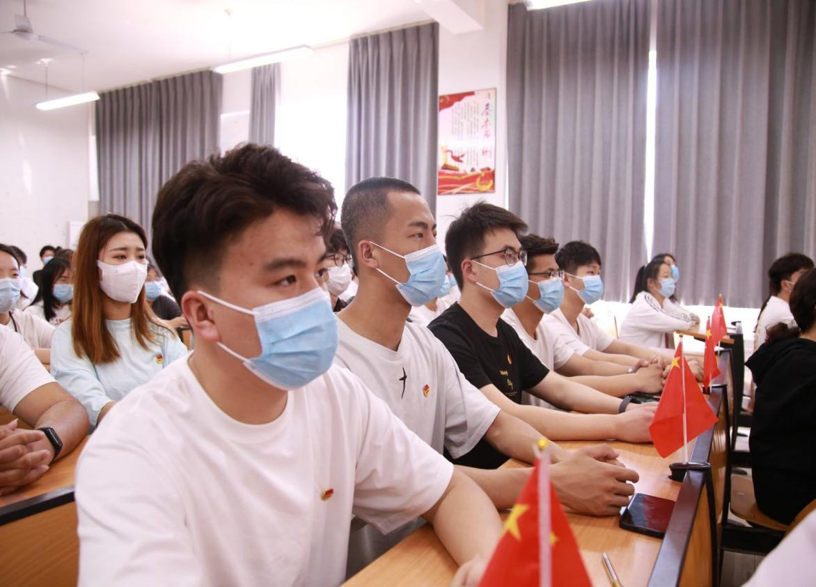 大会开始,党伟老师强调青年兴则国家兴,青年强则国家强,青年团员要增强“四个意识”、坚定“四个自信”、做到“两个维护”,弘扬“爱国、进步、民主、科学”的五四精神,砥砺前行、奋发有为。接下来,郭梦垚老师宣读新团员名单,刘士鹏老师为新团员颁发了团章、团员证和团徽。随后在庄严的宣誓仪式中,新团员跟随团务部负责人赵士清高举右拳,庄严宣读入团誓词,铿锵有力的誓词回荡在现场每一位青年心中。新团员代表刘婧怡进行发言,她说要时刻保持团员的先进性,积极为广大同学服务,时刻以团员的标准严格要求自己,力争成为一名优秀的共青团员。最后,郭梦垚老师带大家重温一百年来中国青年运动的光辉历程,对新发展团员做出展望,希望广大青年继承和发扬伟大五四精神,以实际行动迎接党的二十大胜利召开。