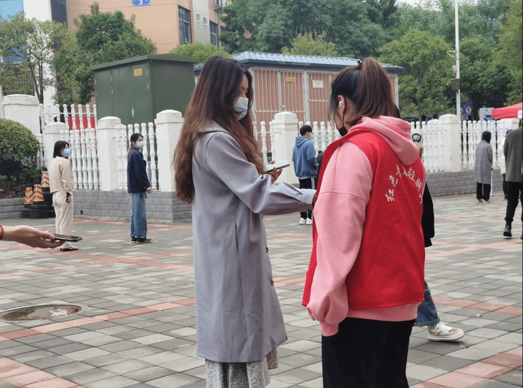 (志愿者测量体温)