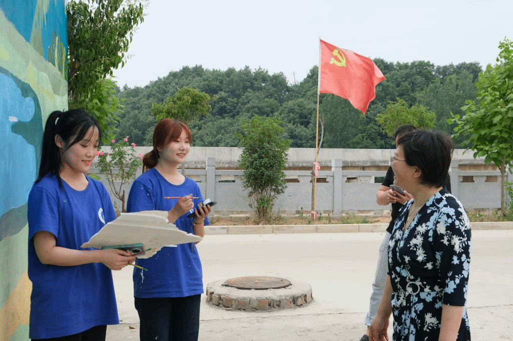 2022年6月9日上午,beat365中文官网公司党委副书记王靖一行到鲁山县库区乡王村对beat365中文官网“创意鲁山,绘出你我”红色青春实践团的师生送去关怀和问候。