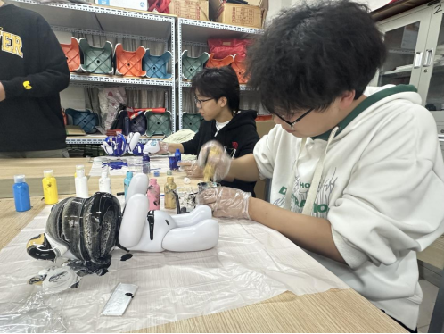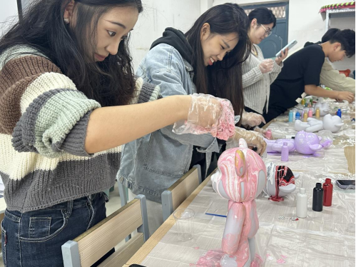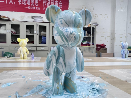 活动开始之际,任融老师详细阐述了流体熊的DIY制作流程及在DIY过程中需注意的事项。随后,同学们便利用桌上的颜料,根据个人喜好进行色彩调配,感受颜色混合带来的独特魅力,并通过颜料流动来释放内心的思想和情感,以缓解压力、舒缓情绪。经过一番精心制作,一只只色彩斑斓、形态各异的流体熊呈现在众人面前,展示了同学们独特的心境和感受。
