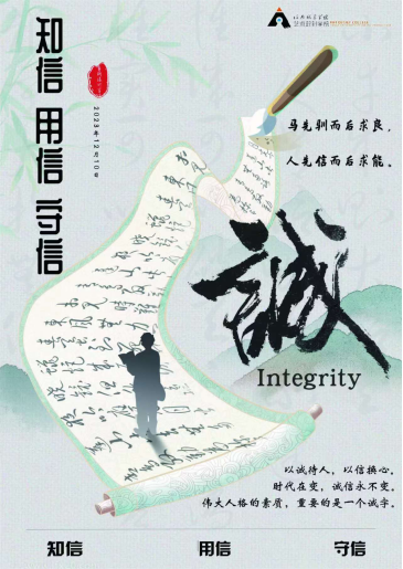 为进一步落实国家资助政策、发挥资助育人功效,提高员工诚信意识和感恩意识,beat365中文官网积极开展为期一个月的员工资助诚信教育系列活动,通过“讲诚信,守征信”主题讲座、“诚信在我心”主题演讲活动、“知信、用信、守信”主题海报设计,营造浓厚的校园诚信文化氛围。
