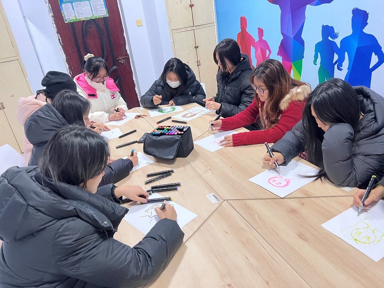活动现场,氛围轻松而温馨,开场环节以“名字接龙” 热身游戏帮助成员们初步认识彼此,快速活跃气氛。接下来的环节中,同学们拿起画笔,专注地绘制自画像,通过线条与色彩勾勒出当下内心的自己,一幅幅自画像或简约、或细腻,展现出多样的心境,舒缓心中的压力。紧接着,进入匿名倾诉环节,大家将近期在人际关系、学业压力等方面的困惑与烦恼认真书写下来,打乱放在一起。随后的抽签解答环节更是把气氛推向高潮,抽到纸条的同学和老师化身 “心灵解语人”,结合自身经验与感悟,为他人的问题出谋划策。有的同学针对人际交往中的沟通障碍分享了真诚沟通的技巧,有的则对学业焦虑提出合理的时间管理建议,大家相互启发,在交流中驱散心头阴霾。