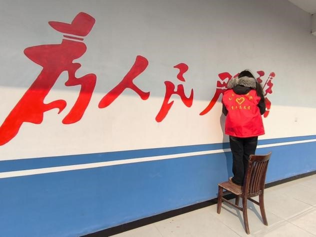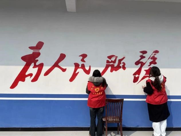 此次修缮工作意义重大“为人民服务”这五个大字不仅是标志性标识,更是焦店镇相关部门始终坚守的根本宗旨与行动指南。修缮工作开始前,红色轻骑兵服务队志愿者为确保修缮效果与原字体高度契合,志愿者们仔细研究字体结构、笔画粗细等细节。采用环保材料进行修复与重绘。从清洗旧字体表面污垢到填补磨损处,再到精准上色。每处都凝聚着志愿者们的匠心与对焦店镇当地相关部门工作的敬意。