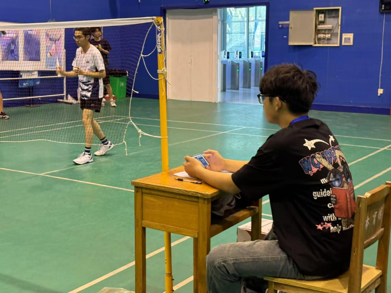 比赛设置了男子单打和女子单打两个项目。赛场上,选手们迅速进入状态,发球、接球、扣杀一气呵成,每一个动作都尽显专业水准,羽毛球在空中划出一道道优美的弧线,选手们敏捷的身姿和精湛的球技,赢得了现场观众的阵阵喝彩。选手们个个精神饱满,斗志昂扬。每一个动作都娴熟流畅,展现出扎实的基本功和高超的球技。男子单打比赛中,同学们凭借出色的爆发力和敏捷的反应能力,在赛场上左突右闪,大力扣杀,女子单打比赛中,同学们配合默契,她们巧妙运用战术,精准控制球的落点,多次化解对手的进攻。裁判和边裁领取并核对记分表,核对运动员姓名,认真记录比赛结果。
