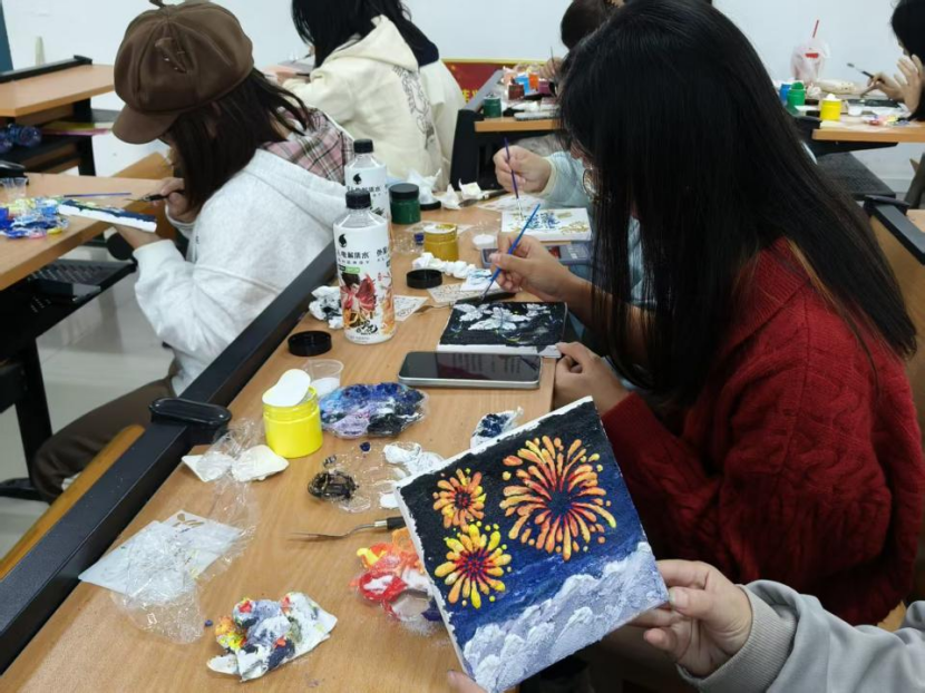 此次活动以肌理艺术为载体,让员工借助颜料、画笔等工具,通过材质堆叠、纹路勾勒,将无形情绪转化为可触碰的艺术作品,在活动现场,同学们沉浸式地参与肌理创作,在指尖与材质、画布的接触中尝试情绪释放,打破艺术与日常生活的距离感。不少员工表示,在此次肌理画活动中的创作为自己学业生活带来丰富的趣味。