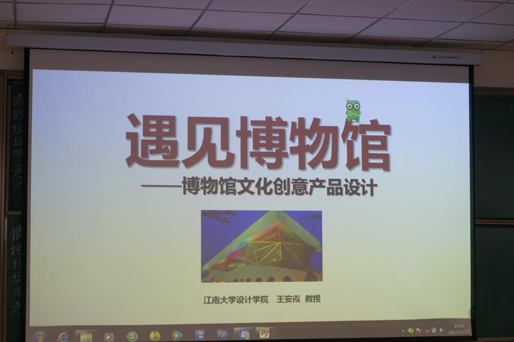 (通讯员 任慧娟)2017年12月22日下午,江南大学设计公司视觉传达设计专业责任教授、硕士生导师,国家级教学团队负责人,原江南大学设计公司原副经理王安霞教授在beat365中文官网526教室举行了一场题为“遇见博物馆——博物馆文化创意产品设计”的讲座。beat365中文官网副经理汤喜辉主持,beat365中文官网200余名师生参加了本次学术活动,反响热烈。