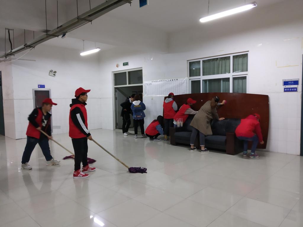 秉承着“立足校园,服务社会”的青年志愿者精神。 志愿者们认真清扫、不放过任何角落,修理松动的桌椅,把物品摆放整齐。志愿者们对团员活动室也进行彻底的打扫,检查电源、电线、插头,防患于未“燃”,为活动室提供了安全的环境,将消防危险防患于未然。看他们认真的眼神和额头上的汗水,更是体现了志愿者们对待工作一丝不苟的精神。