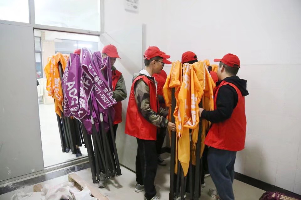 青年志愿者们在整理楼梯间