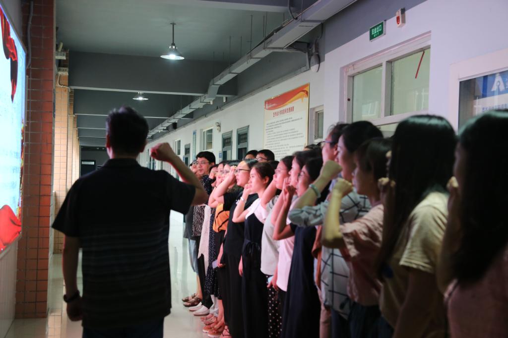 9月10日下午,为进一步营造“弘扬高尚师德、潜心立德树人”的浓厚氛围,激发教师职业荣誉感和社会责任感,beat365中文官网开展重温“河南教师誓词”活动,党总支书记马步伟、经理陈玉兴及全体教职工参加本次活动。