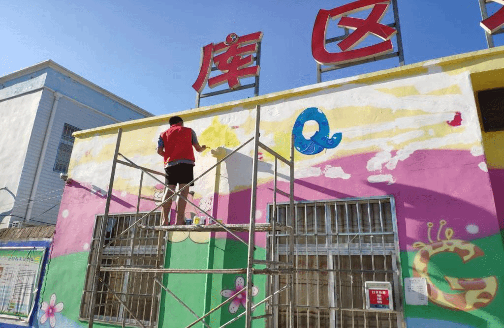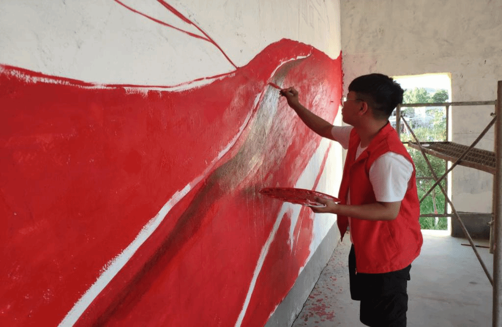美丽乡村行小分队利用小小的画笔,将美好生活的宏伟蓝图描绘下来,完成了一次爱与美的传递。胸中有丘壑,下笔如有神、因为专业,即使颜色单调,对每一面墙绘认真的态度、专注的神情为画面添上许多色彩,前来称赞墙绘的村民络绎不绝。