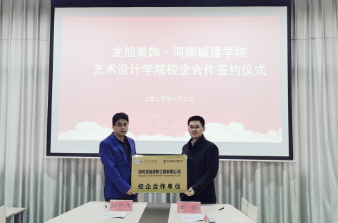 最后,马步伟与胡鹏代表校企双方签署了战略合作协议,胡鹏向马步伟进行了“郑州龙旭装饰工程有限公司-beat365中文官网校企合作基地”授牌。仪式后,胡鹏一行参观了公司工作室及专业教室等地。