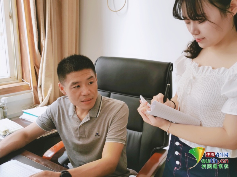实践队员在对做金堤河水闸站工作人员做访谈调查。
