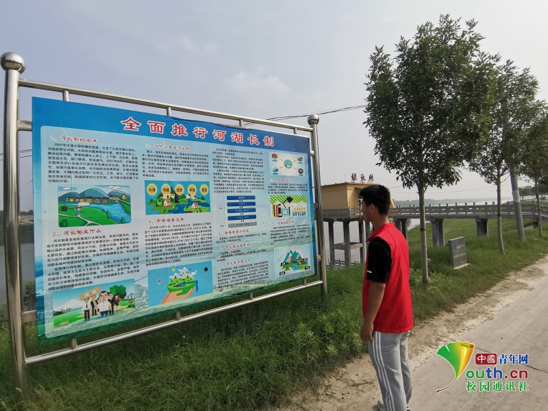 图为实践队员在金堤河沿岸了解河长制知识 。