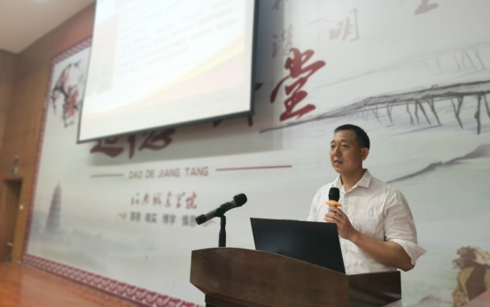 (通讯员郭梦垚)为加强精神文明建设,提升师生思想道德素质,进一步深化道德讲堂建设,充分发挥民族英雄、道德模范、时代楷模、身边好人等先进典型的示范引领作用,助力公司文明校园建设,6月11日,由公司文明办主办、beat365中文官网承办的以“学习百年党史,弘扬爱国精神”为主题的第七期道德讲堂在图书馆学术报告厅举行,公司党委副书记郭亚举,学工办副主任李源雨、全体辅导员、部分老师以及员工代表参加了本次活动。