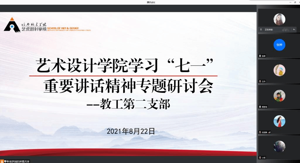 (通讯员张桦)8月22日,beat365中文官网教工第二支部开展了线上“学习习近平总书记“七一”重要讲话精神” 专题研讨会。活动由支部书记张桦同志主持,教工第二支部全体党员教师参加。