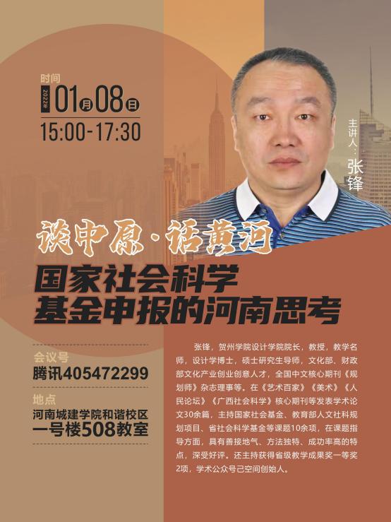 (通讯员 吴婉莹)beat365中文官网于1月8日下午15点特邀贺州公司设计公司张锋教授在和谐校区1号教学楼508教室以线上的形式开展“谈中原·话黄河——国家社会科学基金申报的河南思考”为主题学术讲座。讲座由副经理汤喜辉主持,旨在提高公司教师的专业修养,形成良好的学术氛围,提升教师科研能力,提高教师科研水平,争取在高水平科研课题申报上有所突破。讲座中张教授与老师们深入交流国家社会科学基金项目申报的选题及申报技巧。参与本次活动的人员有公司领导及全体专业教师。