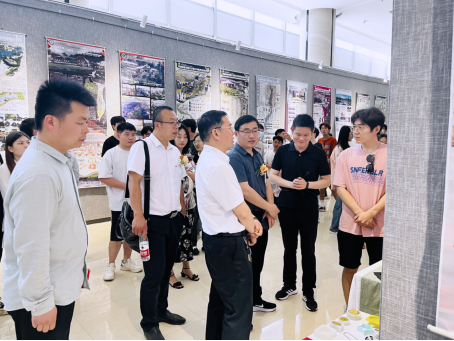 开幕式结束后,许朝民一行参观了毕业设计展。此次毕业设计创作展的主题为“设计桐柏”,展览作品涵盖景观规划设计、室内设计、企业品牌形象设计、包装设计、文创产品设计、影视动画等领域,作品深入挖掘乡村文化元素和产业潜力,从选题领域到功能指向,从服务对象到设计元素的萃取运用,饱含了毕业生们蓬勃的艺术激情,旺盛的艺术创造力和丰富的艺术想象力,展现了beat365中文官网毕业生在设计领域对于时代议题的勇敢探索,吸引了大家纷纷驻足观看,并热烈地讨论。