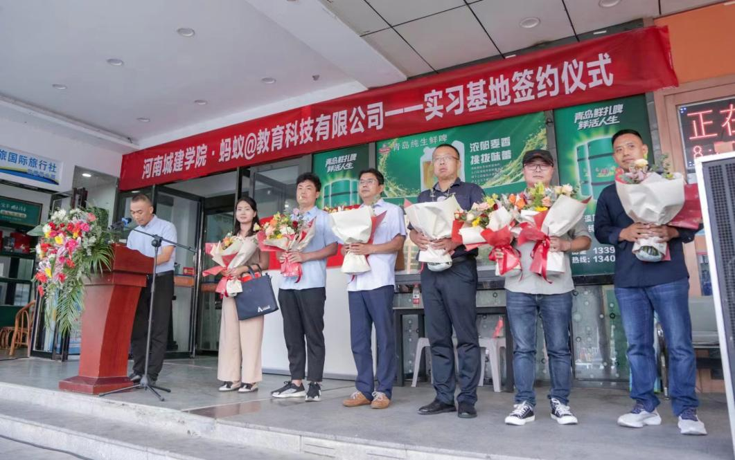(通讯员:吴婉莹)9月14日下午,公司党委书记马步伟、经理郭汝、党委副书记党伟、平顶山市设计创新综合应用研究中心主任黄伟及科研与校企合作办副主任吴婉莹一行赴平顶山蚂蚁艾特教育科技有限公司开展实习基地签约仪式活动,蚂蚁艾特教育执行董事长王剑民、教学董事长雷淮北参加了签约仪式。