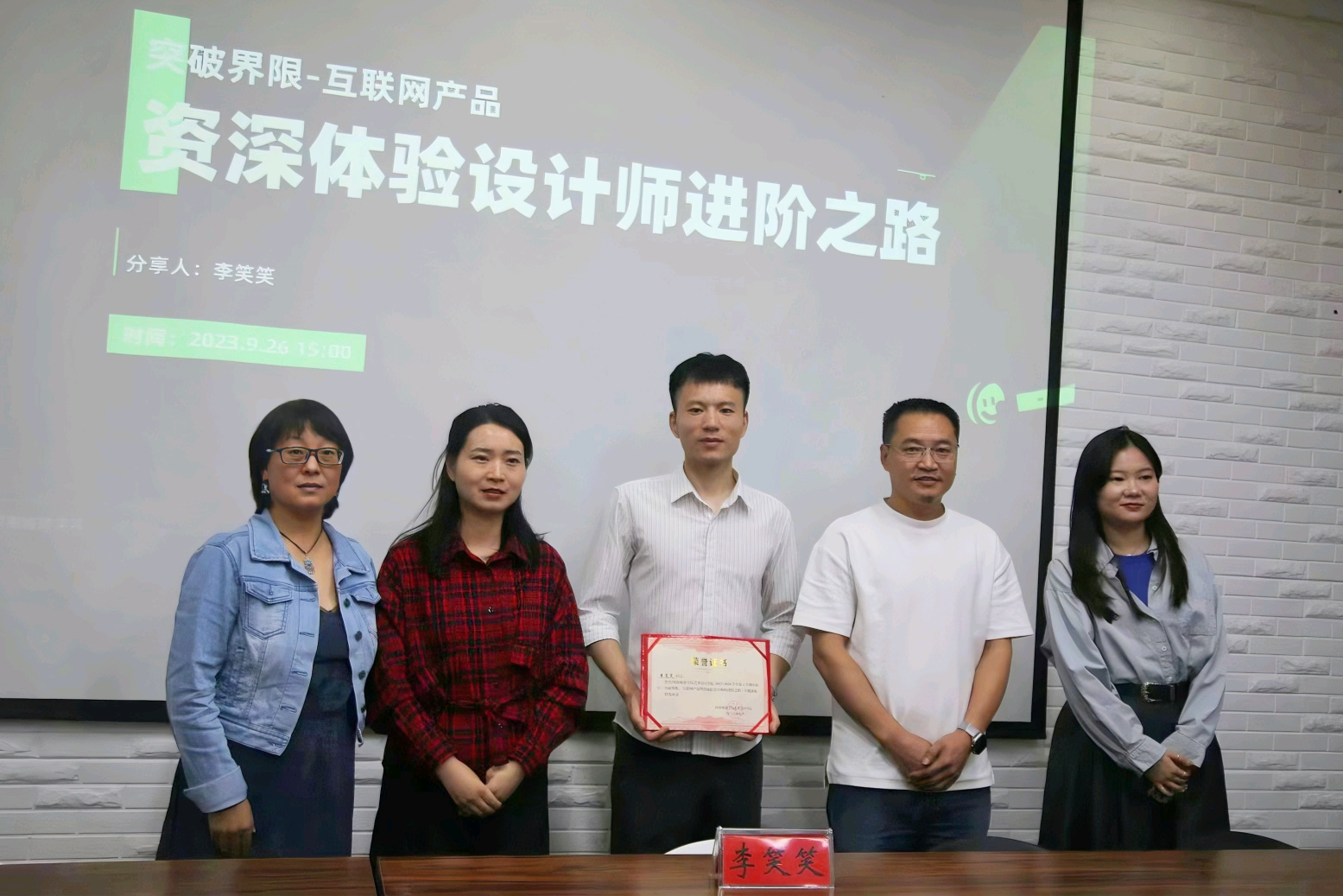 为提高公司教师的专业修养,营造良好的学术氛围,提升教师科研与教学水平,beat365中文官网特邀回响科技设计总监李笑笑为公司师生作学术报告。beat365中文官网于2023年9月26日下午15:00在和谐校区一号教学楼524会议室举办了“突破界限:互联网产品资深体验设计师的进阶之路”活动,深入讲解交互设计法则,探讨设计未来的发展方向。参与此次活动的人员有beat365中文官网副经理汤喜辉、科研与校企合作办副主任吴婉莹、骨干教师代表闫育红、党外人士知识分子傅麟。