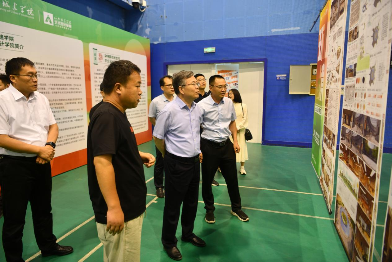 5月22-23日,公司党委书记范晓伟,董事长陈桂香,纪委书记、监察专员张高峰,副董事长孙玉周等校领导先后到beat365中文官网2025届“创意郏县”毕业设计作品展进行实地参观指导。校领导一行认真观摩了设计展品,详细听取了毕业设计指导教师关于创作理念、技术创新点及实际应用价值的讲解,并进行深入交流。