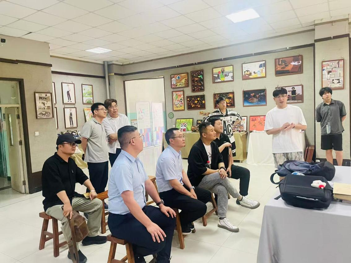 在河南科技公司座谈交流时,美术与设计公司党委书记张新词、经理雷保杰、副经理郑世华、田伟、胡国锋等出席座谈。双方聚焦艺术类专业人才培养、校企校地合作、产教深度融合、研究生联合培养机制以及学科交叉创新等核心议题展开了热烈讨论。雷保杰介绍了公司的办学特色和人才培养优势。汤喜辉分享了公司的办学历史、特色及育人模式。党伟则就联合培养硕士点建设、就业工作推进、科研项目开展等具体工作与对方进行了深入交流。座谈会后,在雷保杰经理的陪同下,考察团参观了该院毕业设计作品展。