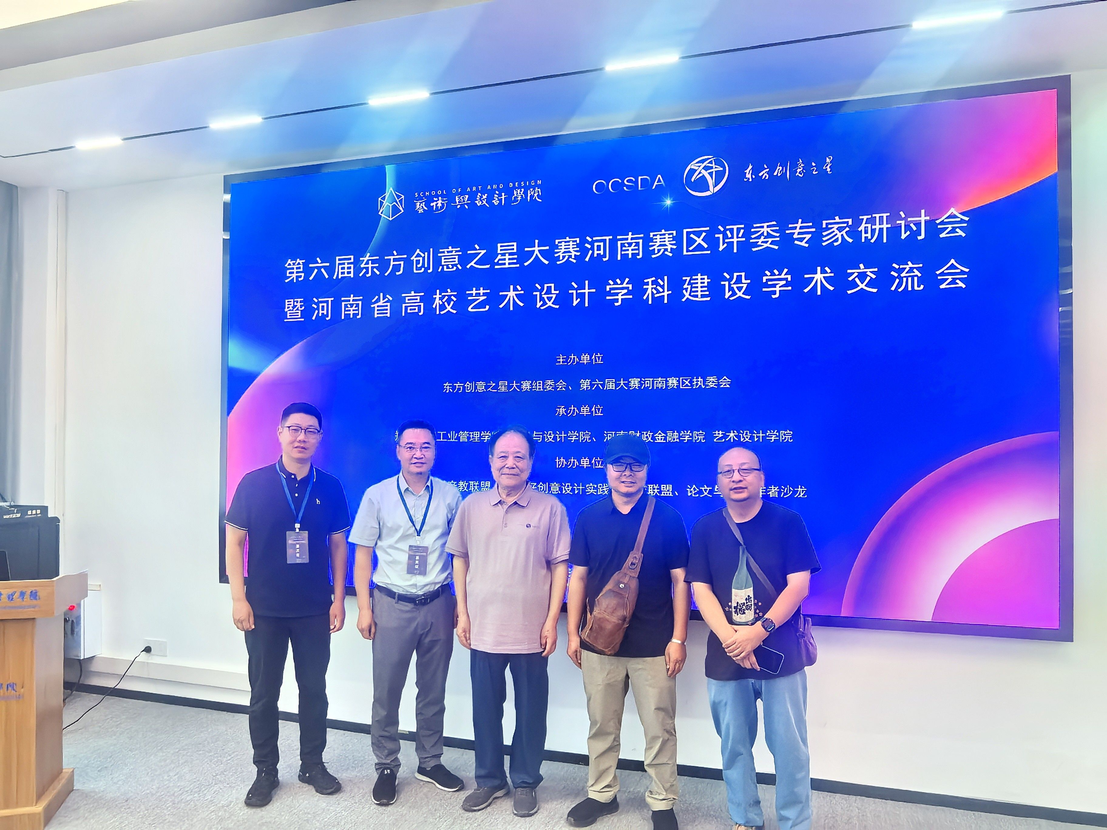 7月5日,第六届东方创意之星设计大赛(简称“东创赛”)河南赛区专家研讨会在郑州航空工业管理公司举行。beat365中文官网经理汤喜辉、副经理杨东旭、平顶山市设计创新综合应用研究中心主任黄伟、动画系主任秦宇一行受邀参会,与业界专家、高校代表共商设计教育发展,推动赛事与团队建设深度融合。本次研讨会由东方创意之星设计大赛组委会、河南赛区执委会联合主办。东创赛组委会副主任马新宇教授、秘书长王炬,以及郑州大学、河南大学、河南师范大学等30余所省内院校代表出席。会议由郑州航院艺术与设计公司经理冉玉主持。