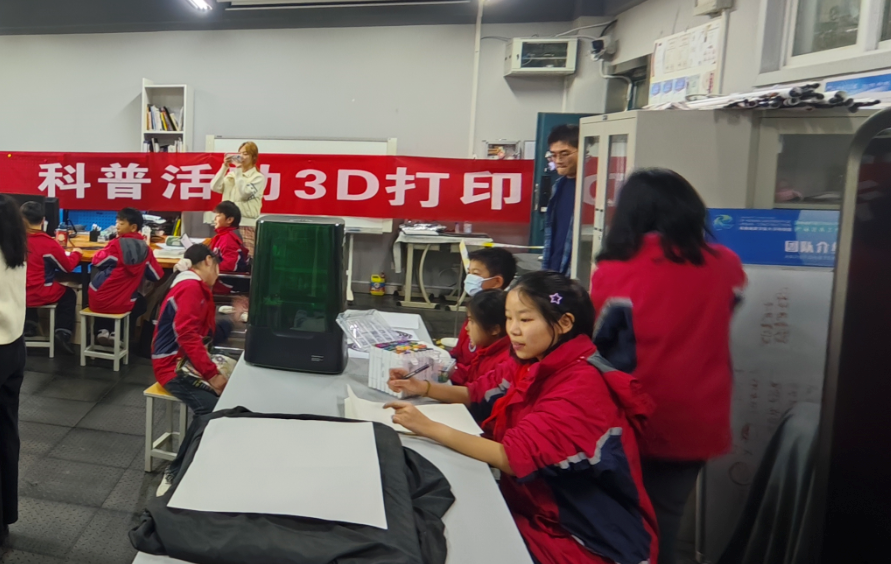 在随后的实践环节中,小员工们展现出浓厚的兴趣。随着打印机喷头精准移动,一层层材料逐层累加,小摆件逐渐成型。同学们全程专注,亲眼见证创意从虚拟图纸到实体物件的转化过程,现场气氛热烈。