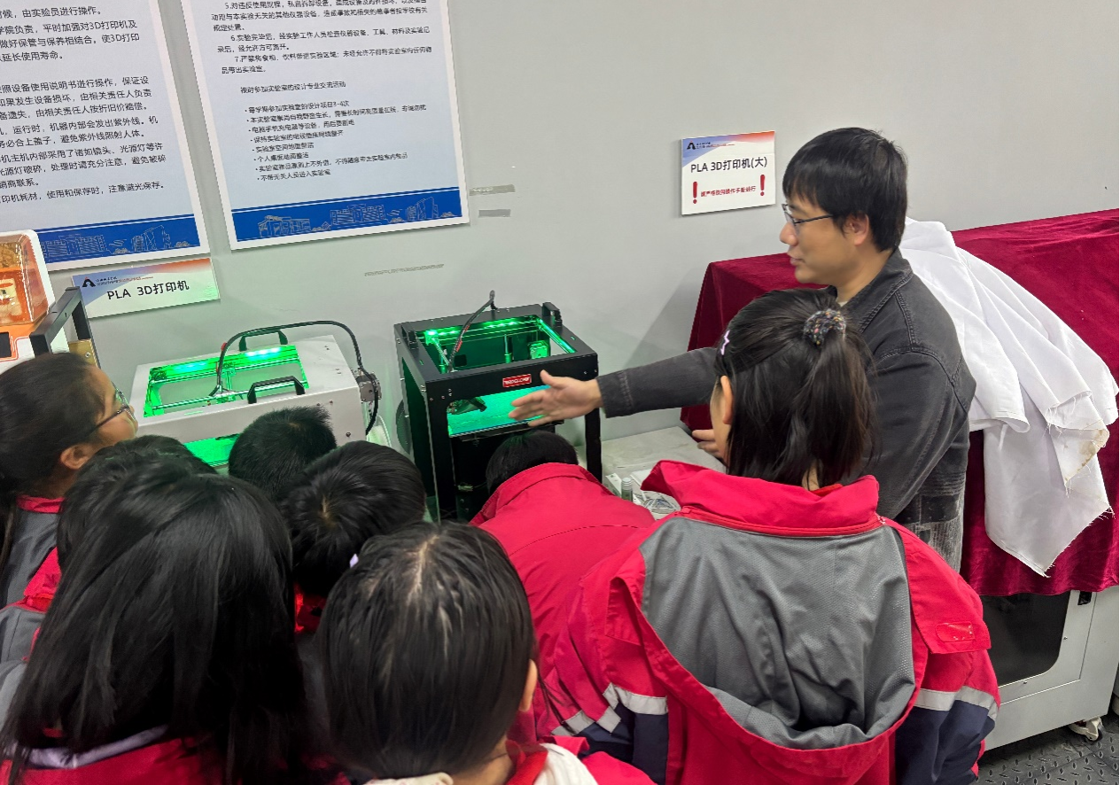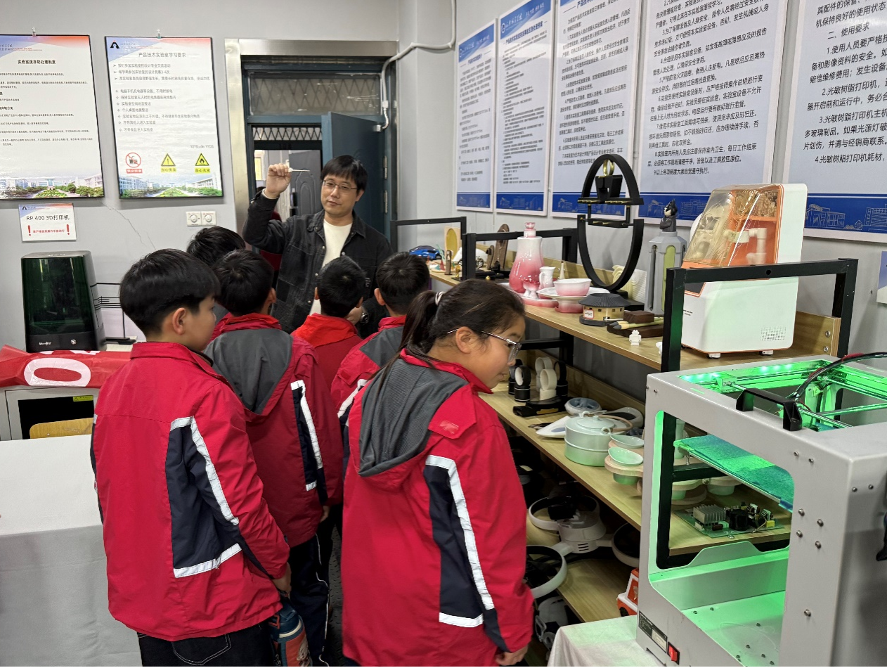 当日上午,在老师的引导下,公明路小学师生有序进入实验室。活动伊始,产品技术实验室指导老师齐建春以生动的实例与实物演示,深入浅出地讲解了3D打印技术的原理、发展历程及其在工业产品设计等领域的广泛应用,为同学们揭开了这项尖端技术的神秘面纱。