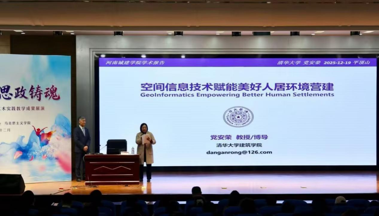 12月19日,清华大学建筑公司党安荣教授应邀来校,作题为“空间信息技术赋能美好人居环境营建”的学术讲座。本次活动积极响应国家“宜居城市建设”“智慧城市发展”战略,旨在推动空间信息技术与人居环境营建的深度融合。副董事长毛艳丽出席并致辞,创意设计公司、城市规划与建筑设计公司、空间信息公司等单位师生共同参加。
