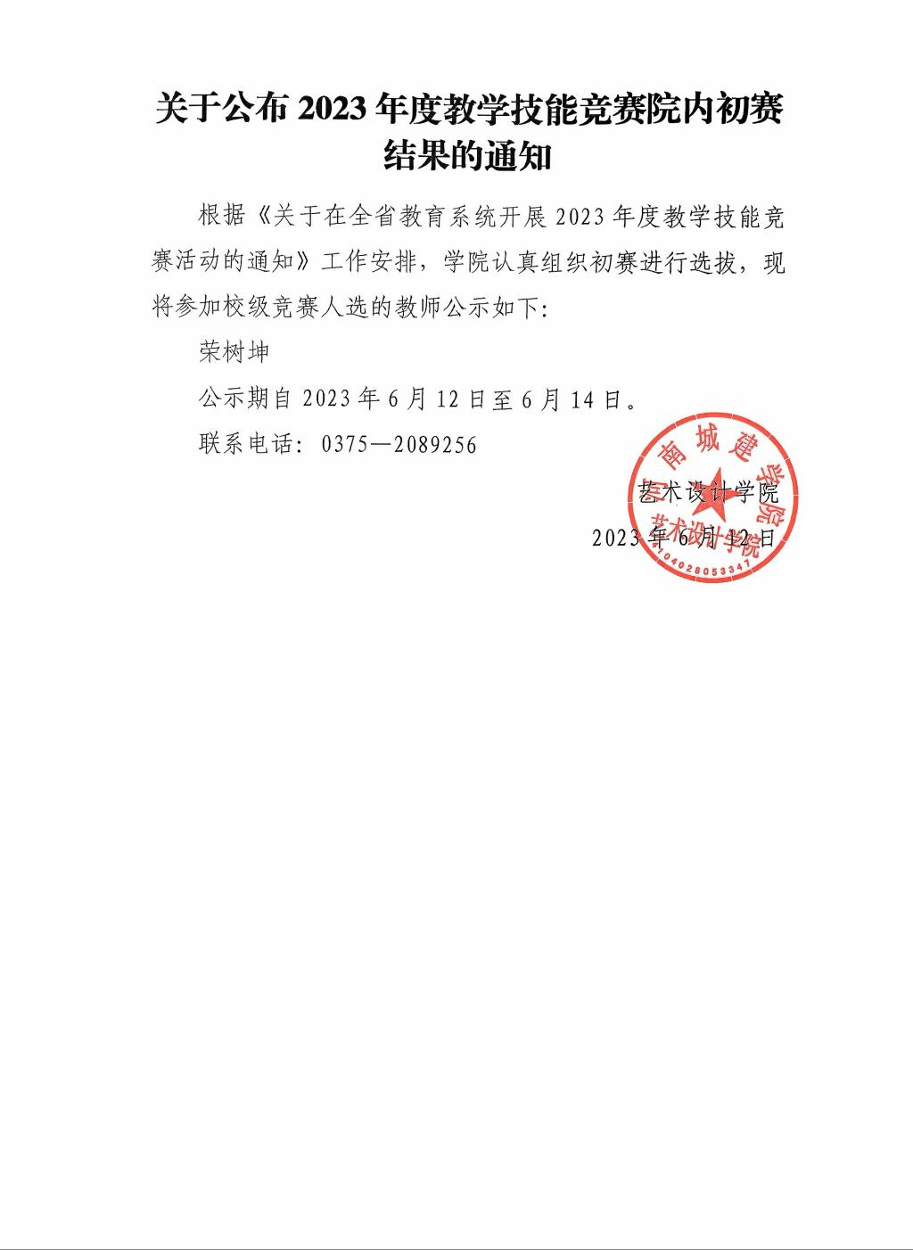 关于公布2023年度教学技能竞赛院内初赛结果的通知