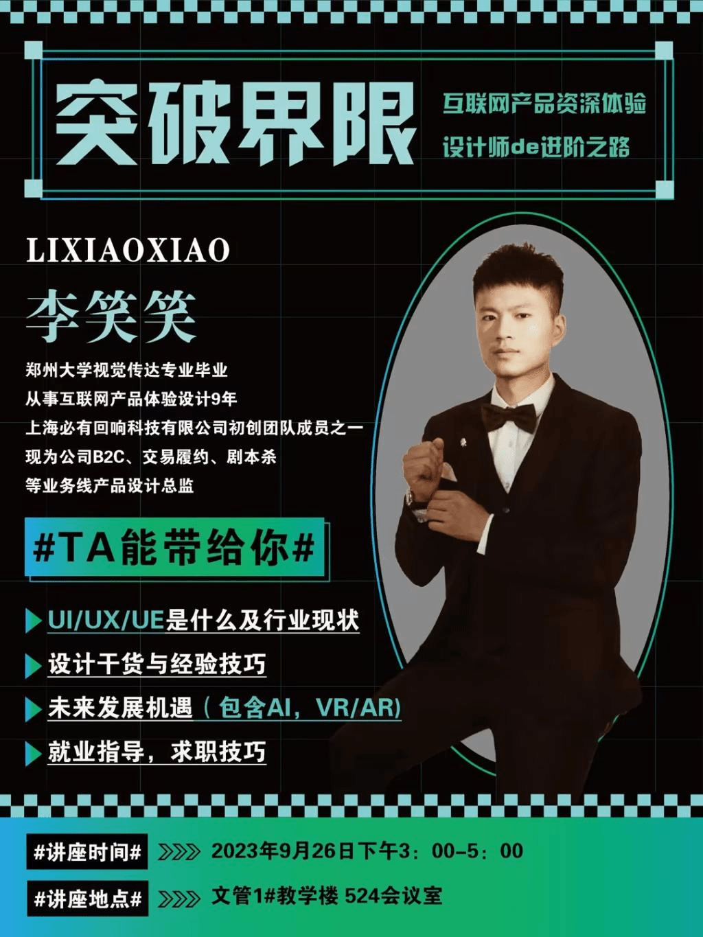回响科技设计总监李笑笑应邀为公司师生作学术报告,现将有关事项通知如下: