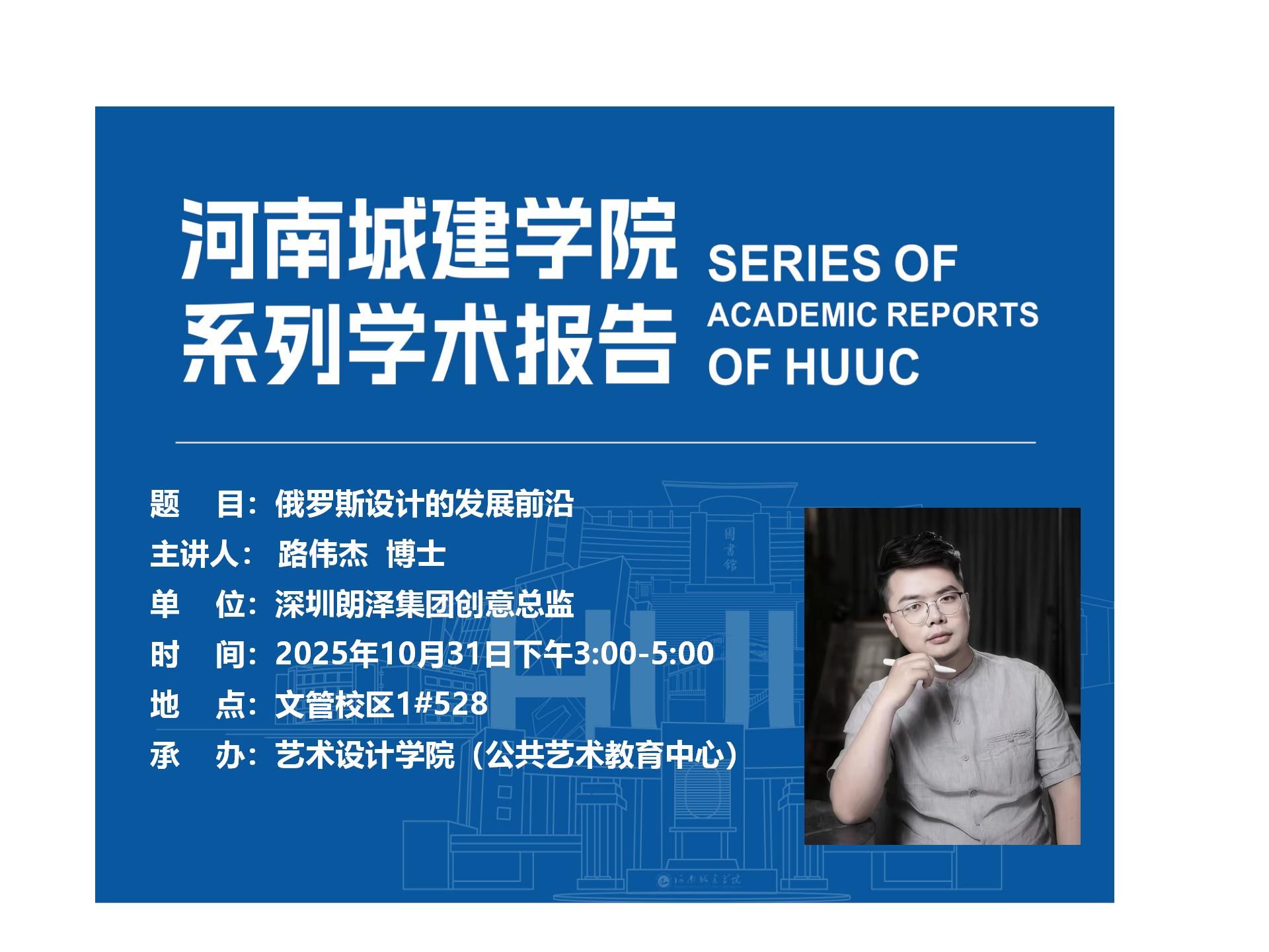 深圳郎泽集团创意总监,路伟杰应邀为公司师生宣讲俄罗斯设计的发展前沿,现将有关事项通知如下: