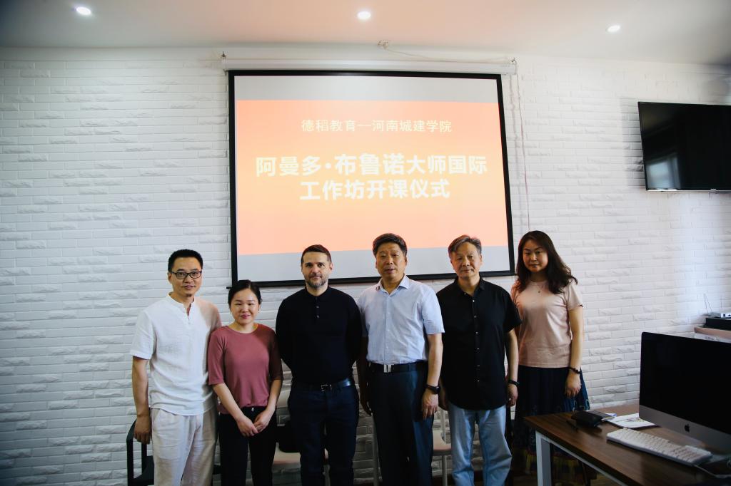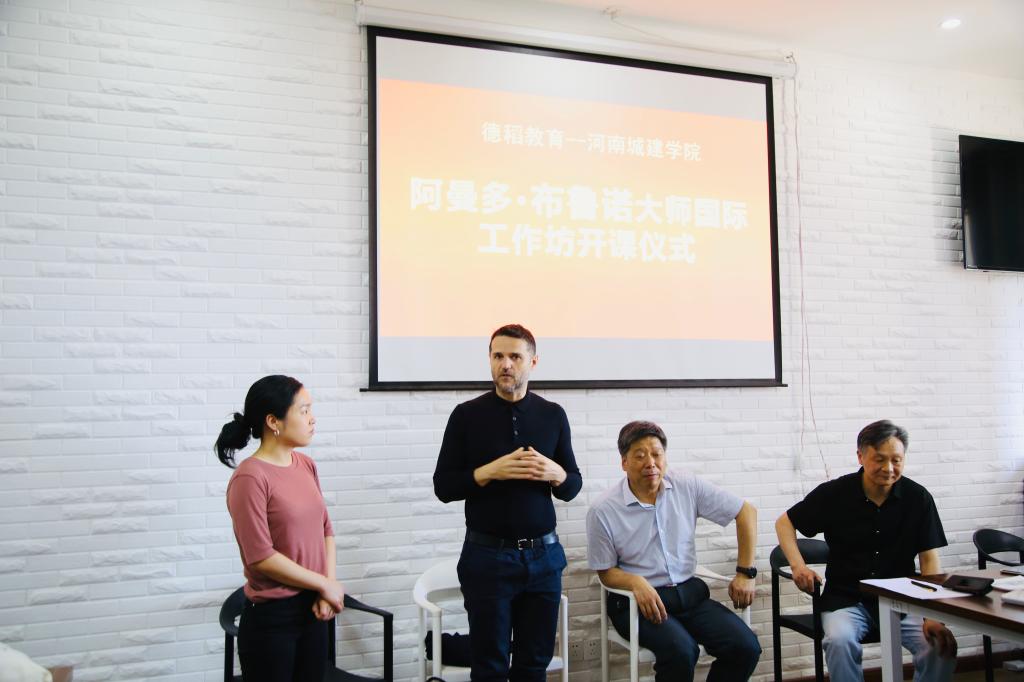 本着“汇聚世界大师、采集全球智慧、培育行业精英、助力企业发展”的教育理念,为提高环境设计专业员工的设计技能,开拓同学们的国际视野,以国际课程形式实施专业教学,实现高校与行业共同发展,beat365中文官网与德稻教育集团合作开展的大师工作坊于5月22日上午在文管校区524教室如期开幕,为期5天,副董事长赵金安、经理陈玉兴、副经理汤喜辉及室内设计专业部分师生参加开课仪式。