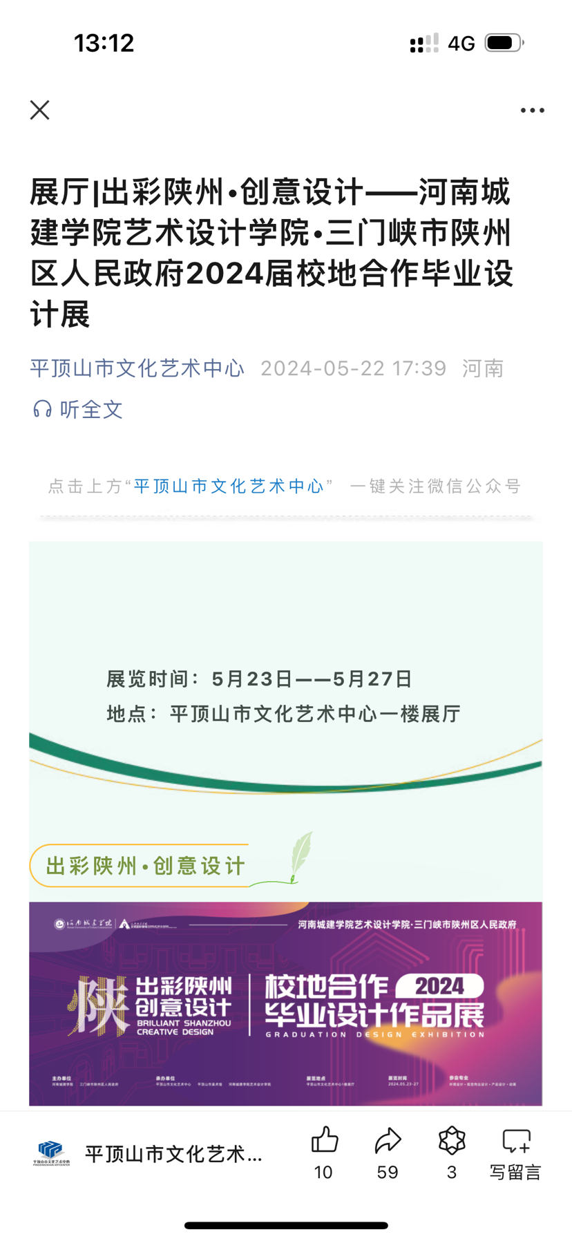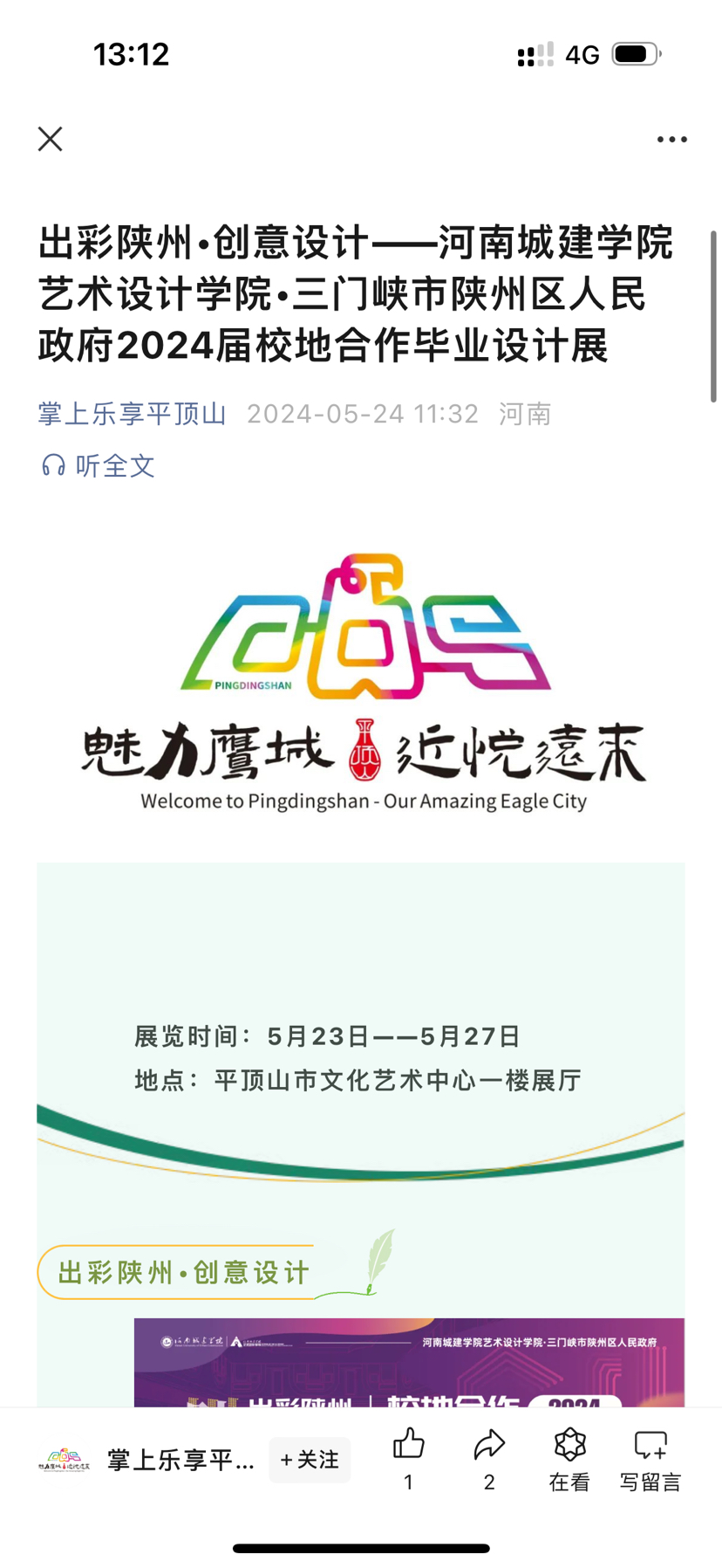 于2024年5月23日上午,“出彩陕州·创意设计”beat365中文官网·三门峡市陕州区人民政府2024届校地合作毕业设计作品展在平顶山市文化艺术中心正式开幕,参加此次开幕式的有公司副董事长宿金勇,三门峡市委宣传部、陕州区委区政府、陕州区文化广电和旅游局等单位负责人,平顶山市委宣传部、平顶山公司、平顶山日报社等单位相关负责人,平顶山市装饰协会、平顶山市相关装饰公司负责人,beat365中文官网全体教师及2024届毕业生。